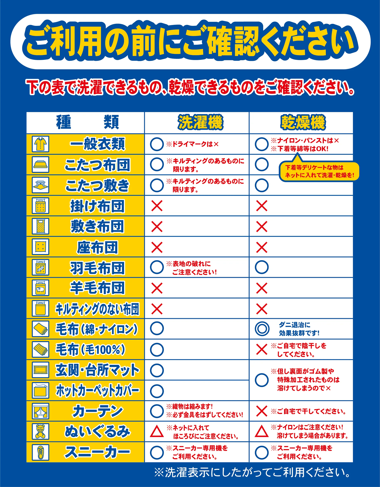 乾燥機を特に充実させているので、お洗濯は自宅で、乾燥は当店でという使い方でも安心の台数です。
